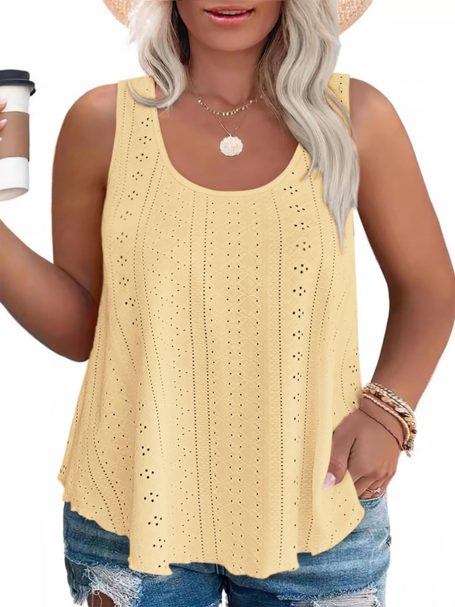 LANREMON Women's Plus Size Eyelet Tank Tops - Breezy Summer Style in Multiple Colors