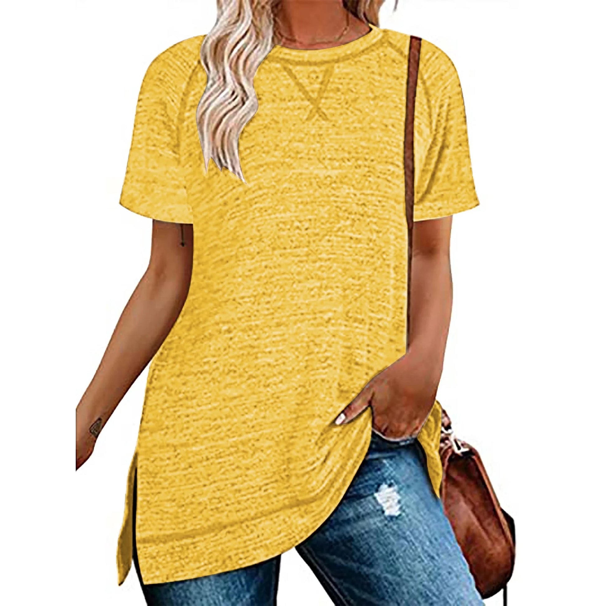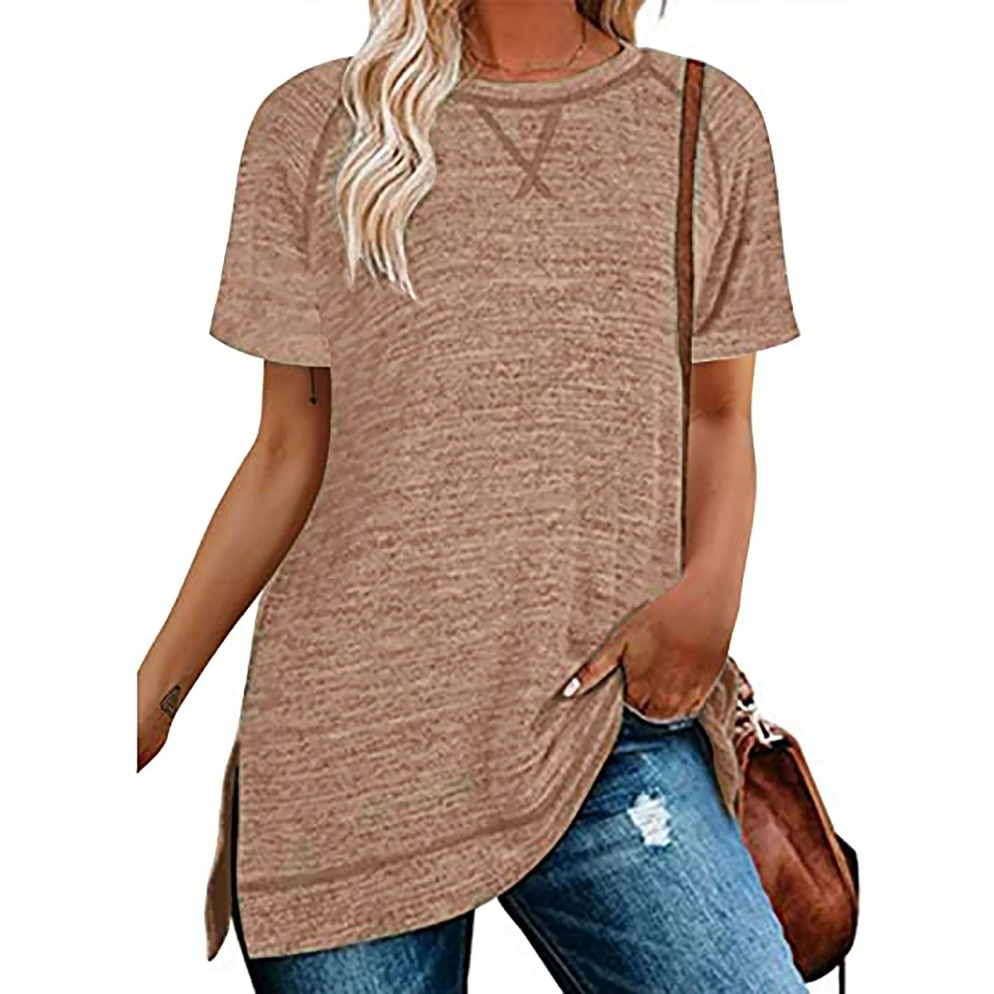 SHIBEVER Women Summer Short Sleeve Tops Women T Shirts Tunic Tops for Women Comfortable Casual Shirts for Women Side Slit Tunic Ladies T Shirt Loose Fitted Solid Tee Shirts Cute Crewneck Blouse Tops for Women Trendy Holiday Deals Women Tops Tee Shirts