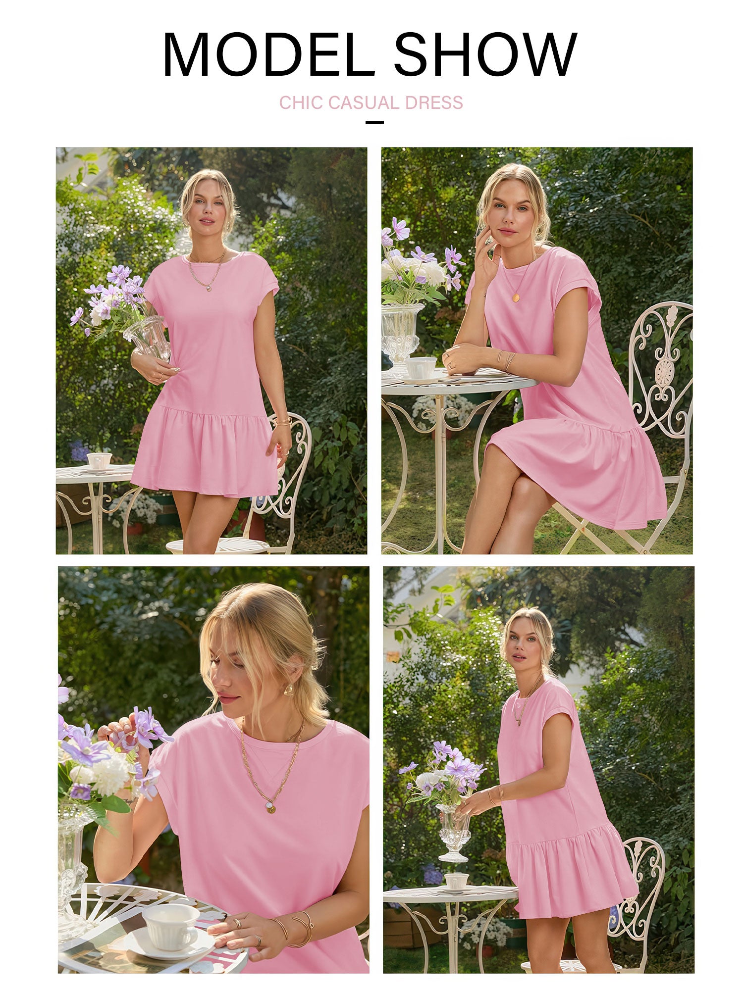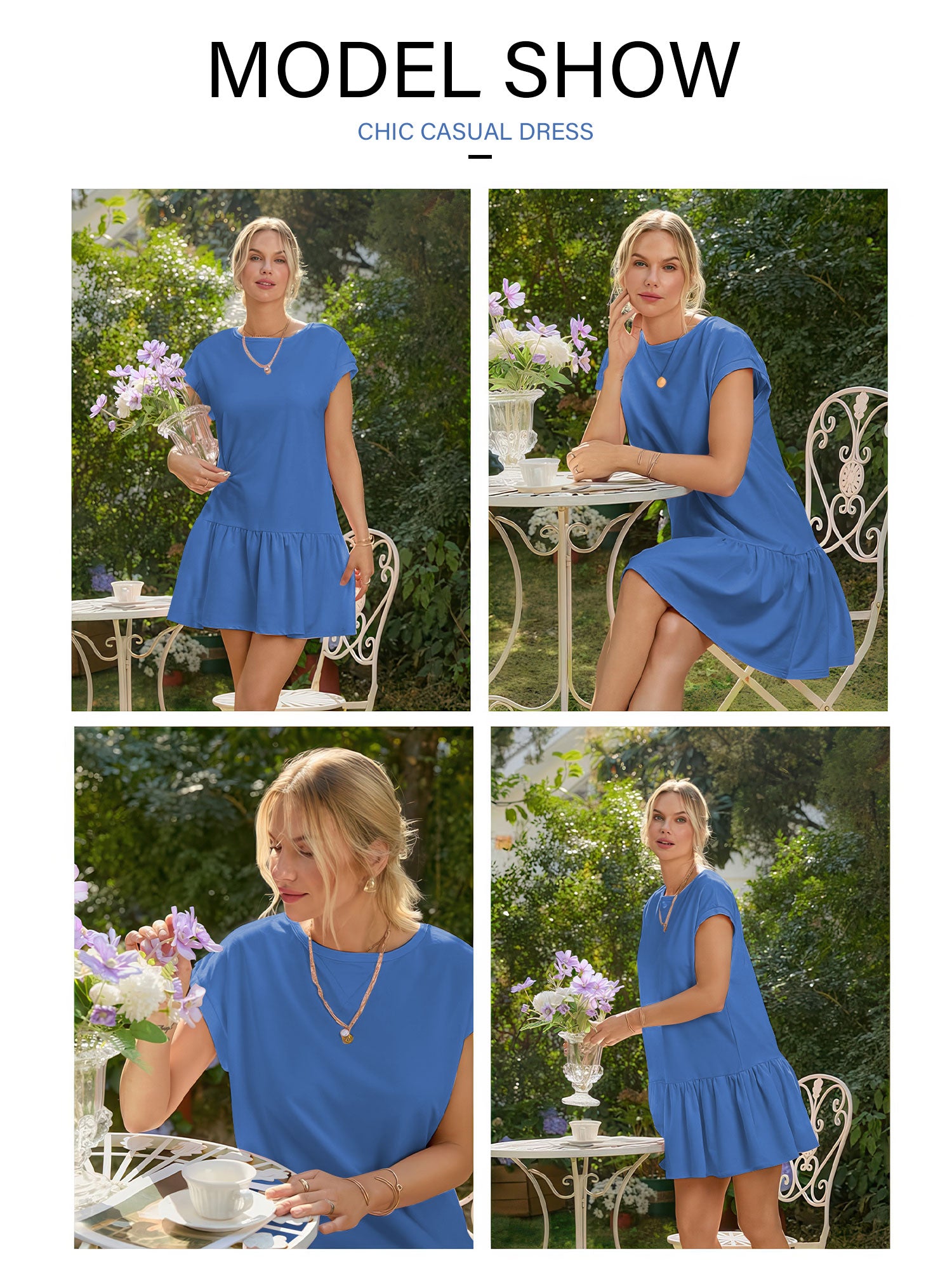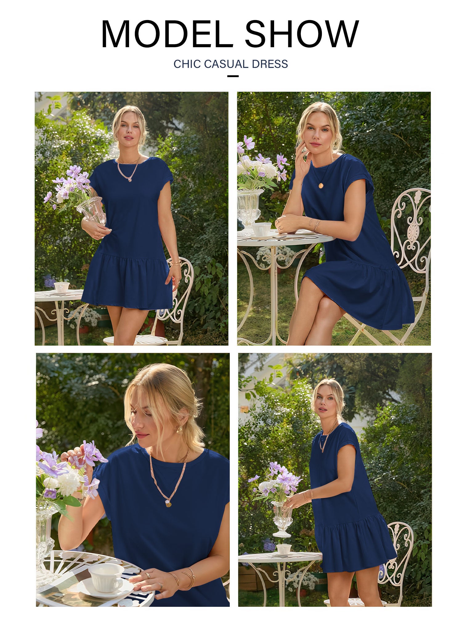 SHIBEVER Womens Summer Dress Casual Ruffle Hem Babydoll T Shirt Dresses for Women Comfy Cap Sleeve Loose Mini Dresses