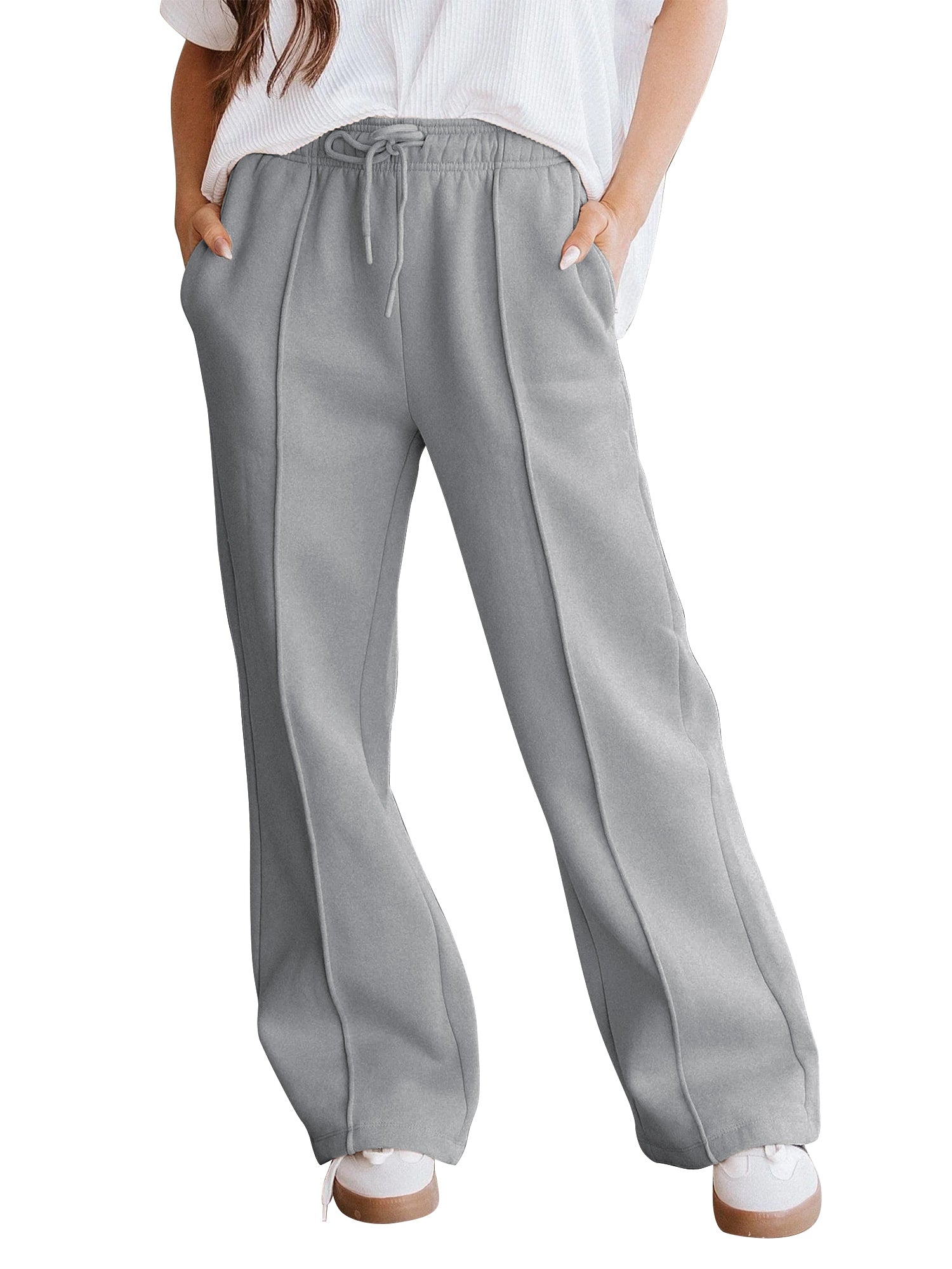 - Comfortable Elastic Waistband Fit: Features a stretchy waistband that provides flexibility and all-day comfort, flattering all body shapes without feeling tight. Ladies pants, womens wide leg pants, womens pants with pockets, fall slacks with pockets, travel pants women, wide leg lounge pants for women, pants for women 2025, fleece - lined pants.