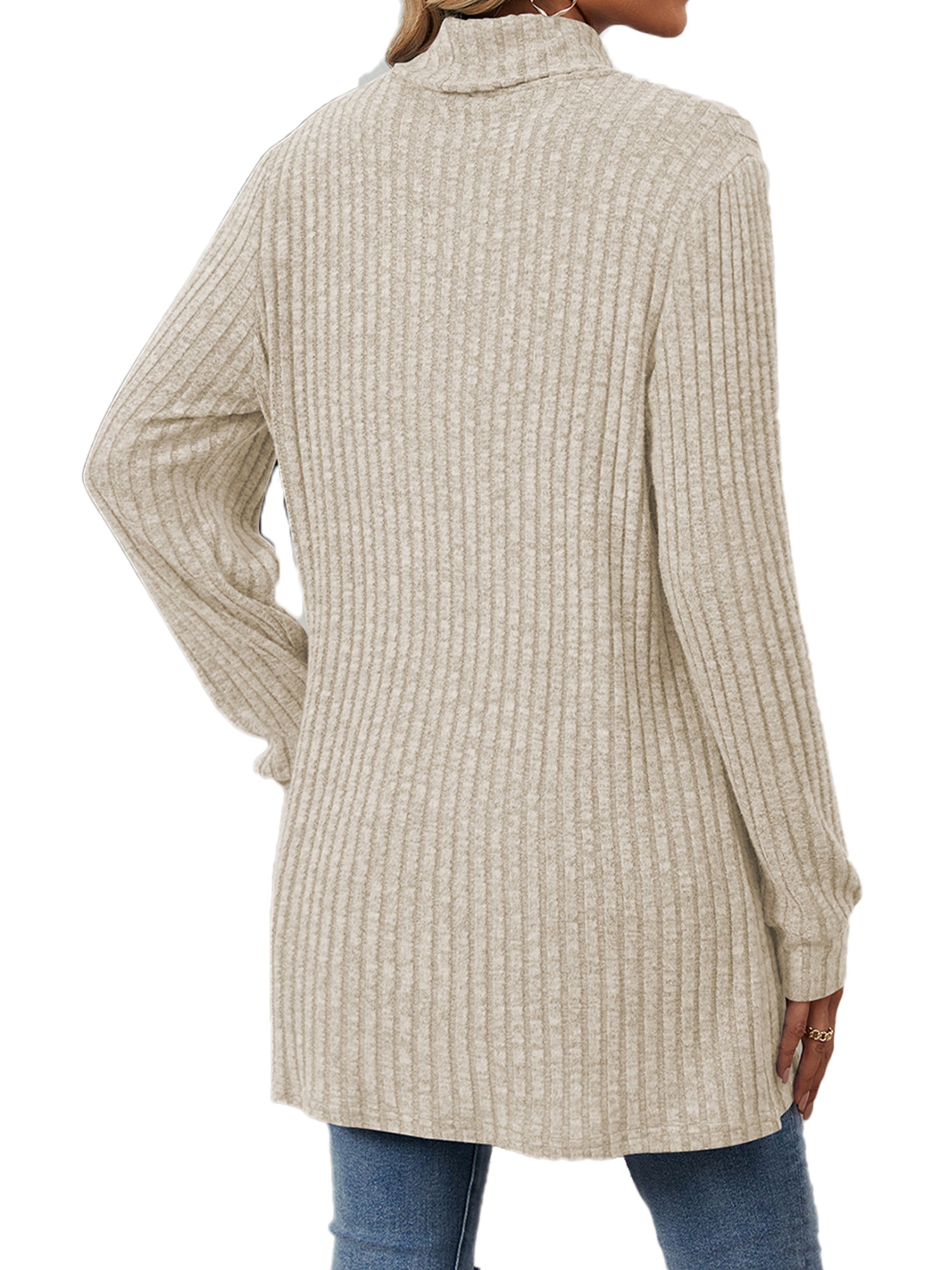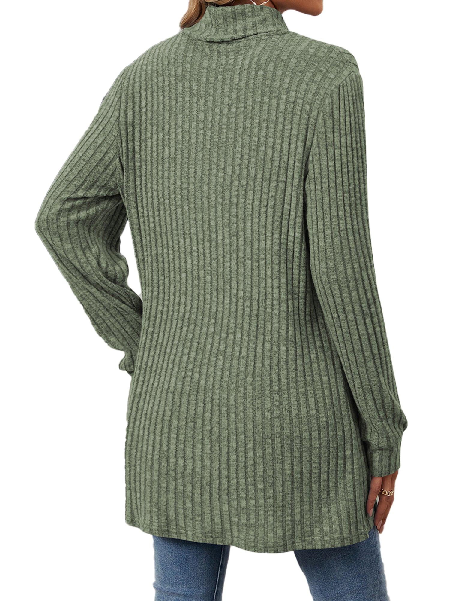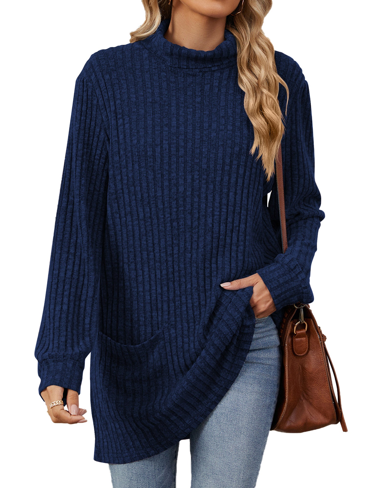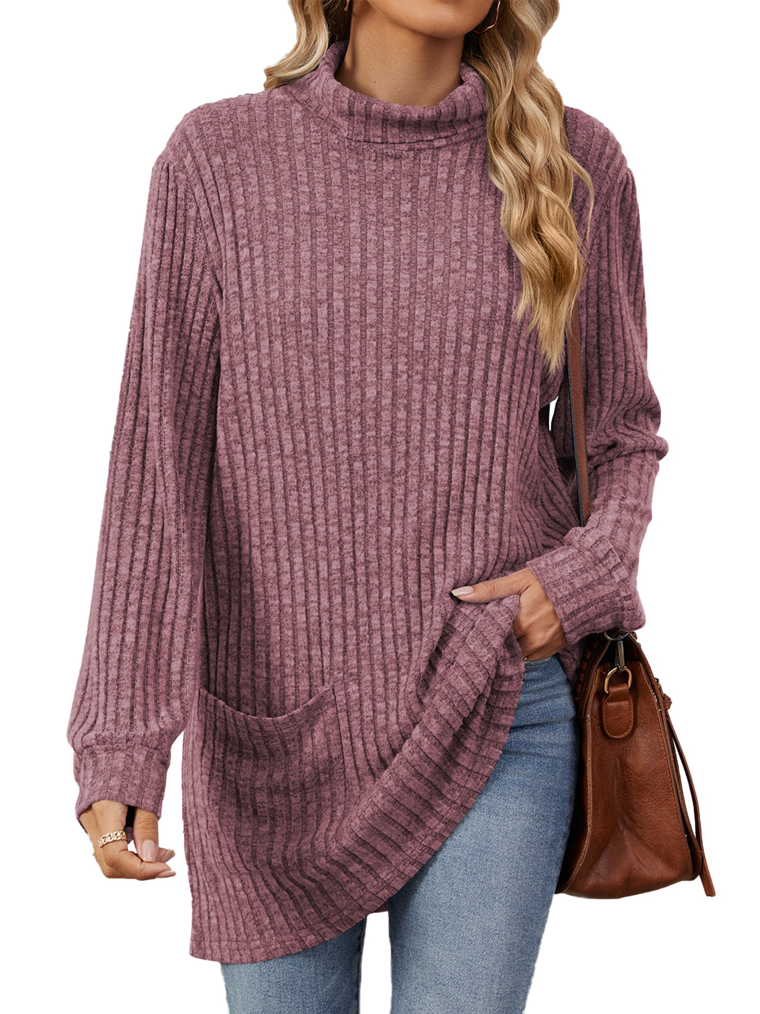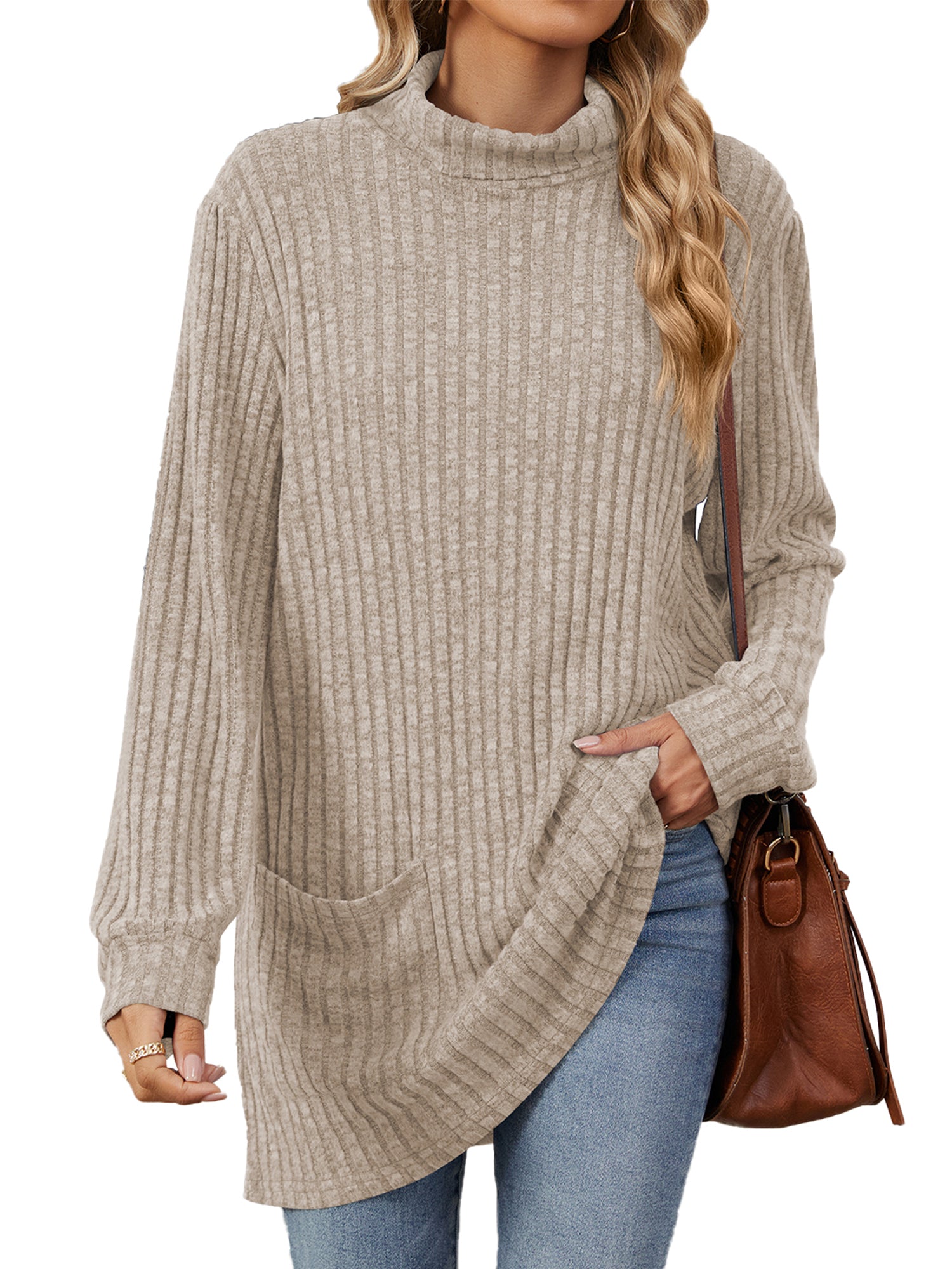 Featuring a chic turtleneck collar, this top balances both modesty and modern flair, making it ideal for transitioning from daytime errands to evening gatherings. The long sleeves and fall-inspired silhouette keep you warm, while the handy front pockets add practicality without compromising on aesthetics. Perfect for layering over dresses or pairing with jeans, leggings, or skirts, these winter clothes seamlessly blend functionality and fashion.